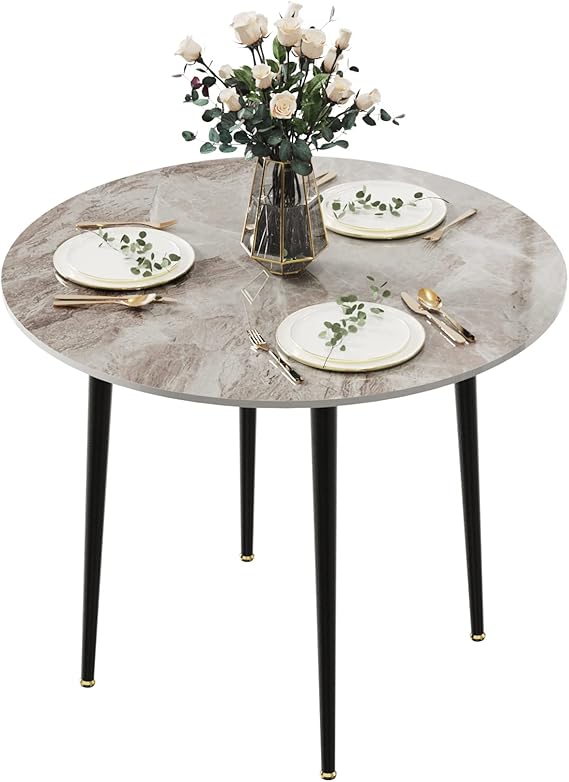 ,Designed with narrow spaces in mind, this kitchen table allows you to seat up to three person without taking up too much space, Sofa , dining Table Round 32": Modern Sintered Stone Marble Effect Table Top