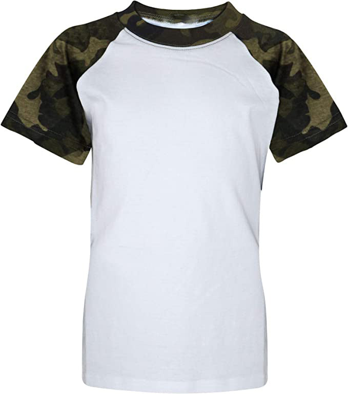 100% Cotton Pull On closure 100% Cotton Soft Feel Printable T Shirts, Crew Neck, Short Sleeves, Raglan Fashion, American Baseball Style, Available Colors; Black, Blue, Camo Charcoal, Camo Green, Navy, Red & Royal Blue. Available Sizes; 2-3 Years, 3-4 Years, 5-6 Years, 7-8 Years, 9-10 Years, 11-12 Years & 13...