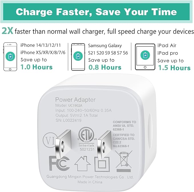 Dual USB port enables you to charge two devices simultaneous, Cube Charging Block for iPhone 14 13 12 11 Pro Max SE XS XR X 8 7 6 Plus, Pad, Galaxy, Tablet, Android Phone