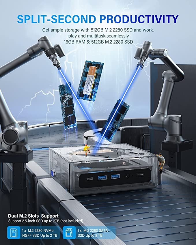 Specific uses for product Education, Everyday Use, Multimedia, Home, Office, Photo Editing, Video Editing, HTPC, Business Brand KAMRUI Personal computer design type Mini PC Operating System Windows 11 Pro Memory storage capacity 16 GB RAM memory installed size 16 GB Specific uses for product Education, Everyday Use, Multimedia, Home, Office,...