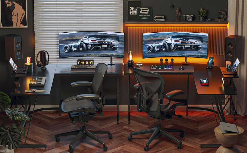 L-Shaped Desk Computer Corner Desk, Home Gaming Desk, Office Writing Workstation with Large Monitor Stand, Space-Saving, Easy to Assemble,