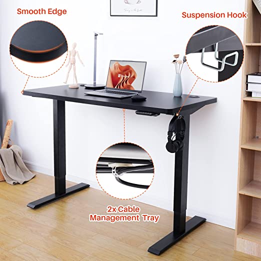 Shape Rectangular Desk design Computer Desk Product Dimensions 126.5D x 67W x 14H Centimetres Colour Black Style Single Motor Base material Engineered Wood Top material type Engineered Wood Special feature Electric Room type Office