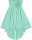 Size Table means age ranges for girls, but they are for general guidance only. Hand wash and do not bleach,  High Low Dress Sleeveless Round Neck Ruched Chiffon Wedding Bridesmaid Formal Flower Dress