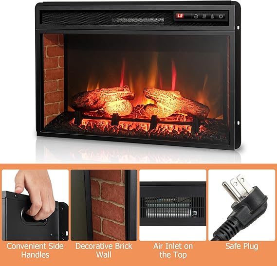 Overheat Protection, 1400W Fireplace Insert for TV Stand, Control your fireplace insert with ease using the LED screen and remote control.Fireplace Heater w/ 4 Adjustable Brightness, Remote & 6H Timer,