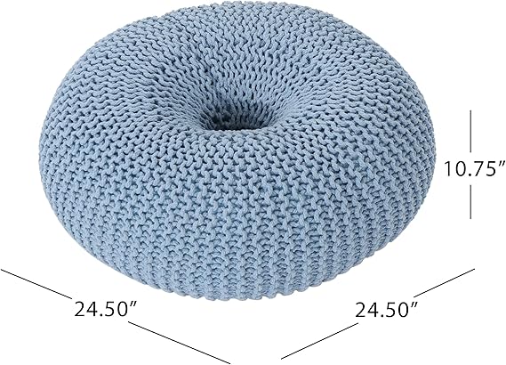 cotton knitted donut pouf in any room of your home, Truda Knitted Cotton Donut Pouf, Light Blue