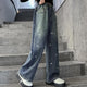 Girls blue baggy Jeans with trendy colorful butterfly print, 2 pockets on front offer functional flair.