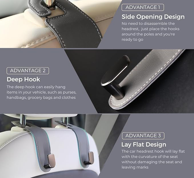 Car Organization Accessories  2 Pack Leather Car Seat Hooks