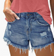 Women's Mid Rise Broken Hole Casual Rolled Hem Ripped Denim Shorts