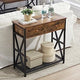Side Table with Square Tabletop with Wood Grain Pattern and Metal Frame, for Indoor Livingroom