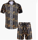 Men's Flower Button Down Hawaiian Sets Casual Short Sleeve Shirt and Shorts Suits