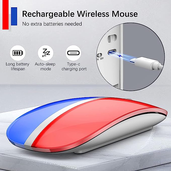 【Rechargeable Optical Mouse】: Built-in rechargeable battery, only 2.5 hours charge can provide you 12 weeks of daily use. Featuring auto sleep, quick wake up and long time standby this cordless mouse automatically enters sleep mode during inactivity. Simply click or move the mouse to return back to work. 【Tri-mode Connection】:...