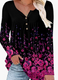 Ladies Long Sleeve Tunic Top V Neck Flower Blouse Top
