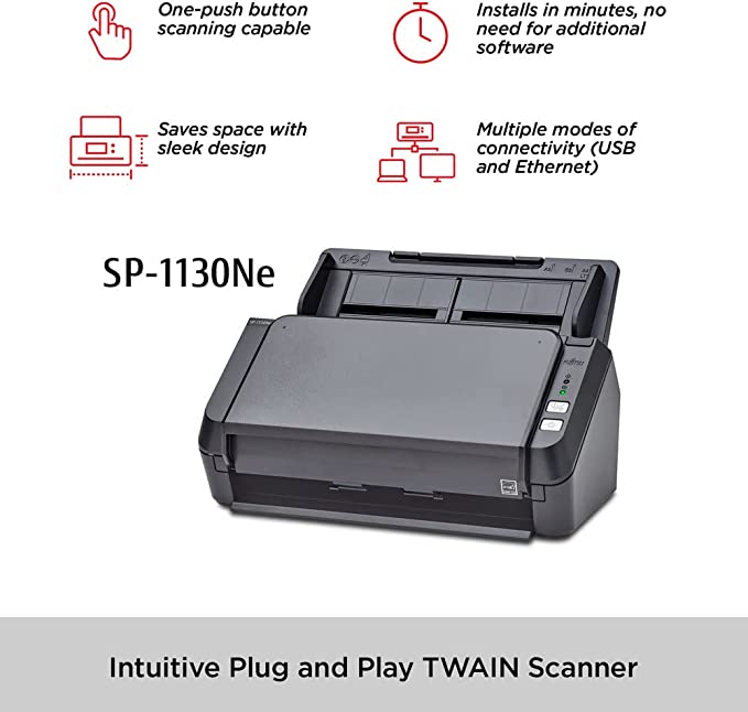 Fujitsu SP-1130Ne Easy-to-Use Colour Duplex Document Scanner with Automatic Document Feeder (ADF) and Twain Driver