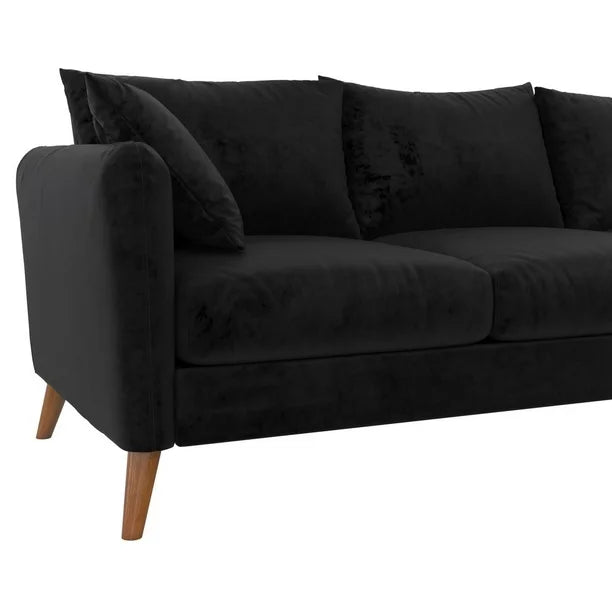 •Transitional small space sectional sofa with slanted light wood legs and reversible chaise that can be placed on either side.•Sleek and slender mailbox arm design that maximizes seating space and loose seat cushions that allow for an easy clean.•Spacious sectional seating with a plush pillow back design and 2 throw...