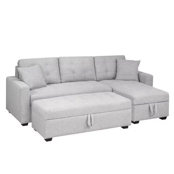 Create a functional seating and sleeping area in your home with this chic sectional sofa. Its neutral light grey finish effortlessly complements a wide range of contemporary interiors. This inviting sectional sofa is crafted with ultra-comfortable seating and easily converts into a convenient bed to accommodate overnight guests as needed....