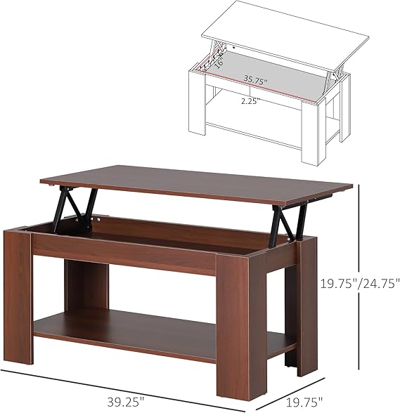 the coffee table with storage can hold up to 132lb, Convertible Center Table with Hidden Storage Compartment and Storage Shelf for Living Room