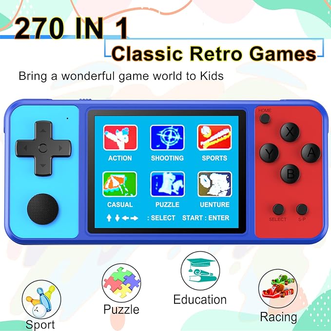 Big Color Display and Gamepad Rechargeable Arcade Gaming System