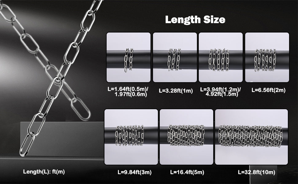 Billboard Chain Link chain has a variety of thicknesses and lengths are available, and all kinds of sizes of billboards can be supported hung. Pet Dog Chain The smooth surface of the steel chain is created by polishing technology, skin-friendly for your puppy while protecting it. Clothe Chain 304 stainless...