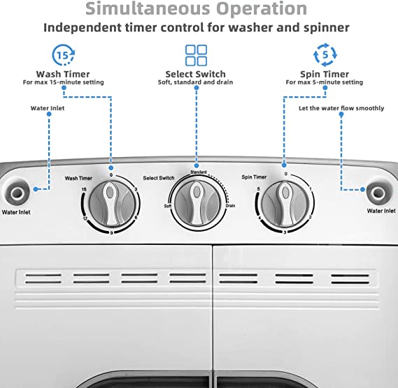 Capacity 5.9 Kilograms Special feature Semi-automatic Access location Top Load Colour White & Gray Cycle options Spin, Drain, Rinse Item weight 2.27 Kilograms Material Stainless Steel Controls type Knob Efficiency High Efficiency