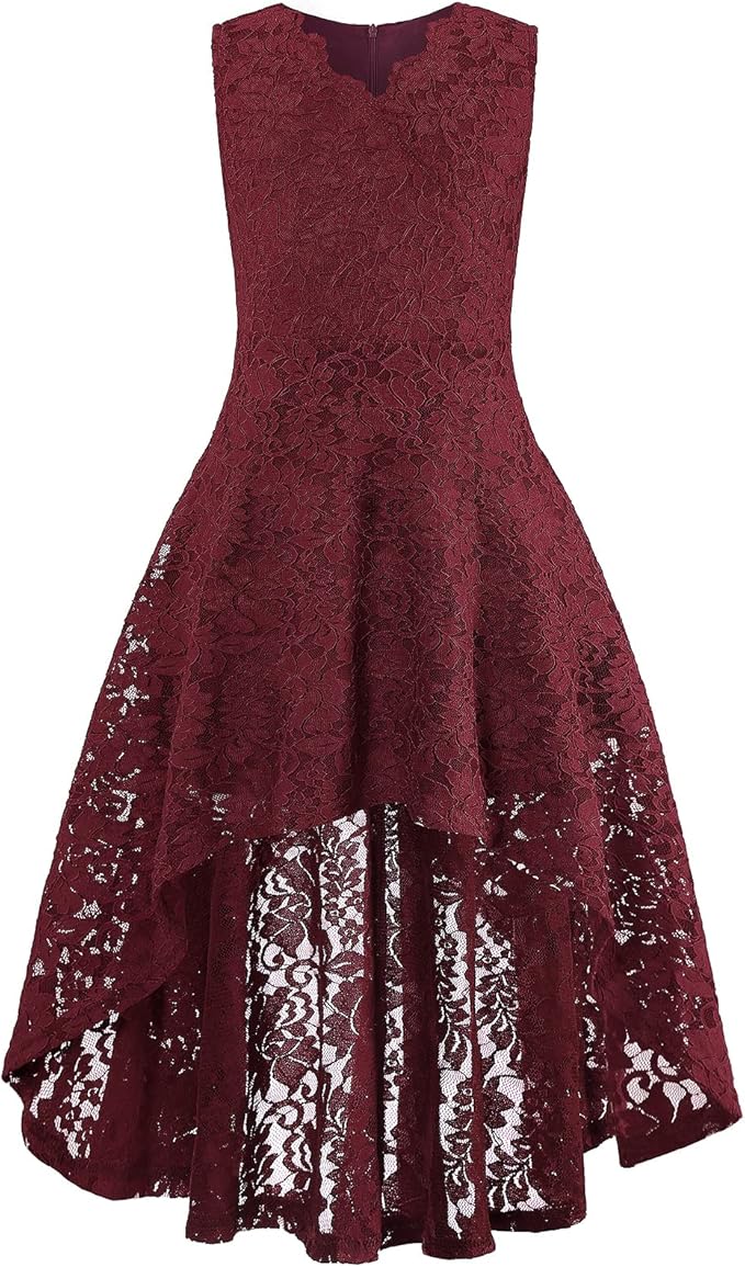 Feature:All over lace print, v neck, dovetail skirt,a line dress, knees length,elegant dress, great for spring, autumn,festival and brithday, V Neck Vintage Flower Girl Dress Casual Girls Party Dress