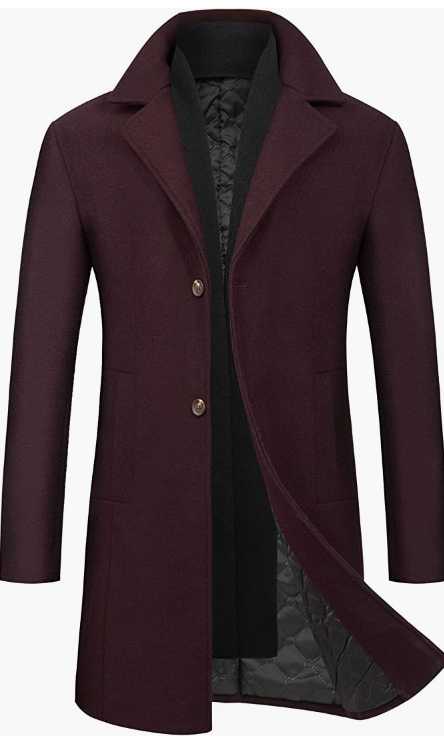 Men’s Slim Fit Wool Coat Winter Long Coat With Free Soft Scarf