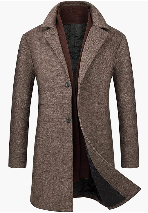 Men’s Slim Fit Wool Coat Winter Long Coat With Free Soft Scarf