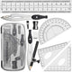 Starter drafting compass set for school geometry, maths learning homework, etc. Kit Starter Maths Set with 2 Drafting Compasses Protractor Set Squares Ruler and More
