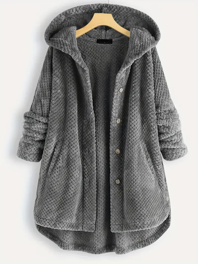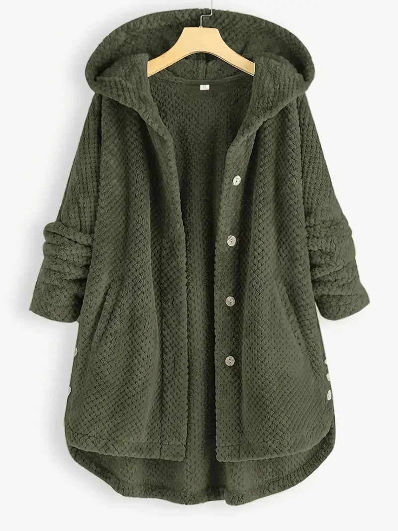 Winter Long Sleeve Solid Fuzzy Fleece Open Front Hooded Cardigans Jacket Coats Outerwear with Pocket